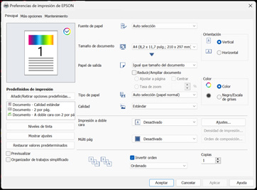 - Seleccione los ajustes de impresión que desea utilizar como los ajustes predeterminados en todos los programas de Windows.