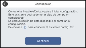 - En la pantalla Continuar, confirme los ajustes que aparecen en la pantalla y seleccione Continuar o pulse la flecha de volver para cambiar los ajustes.
