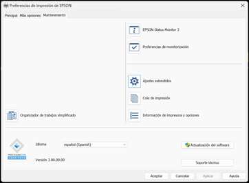 - Seleccione Ajustes de la impresora. Verá la ventana de los ajustes de la impresora.